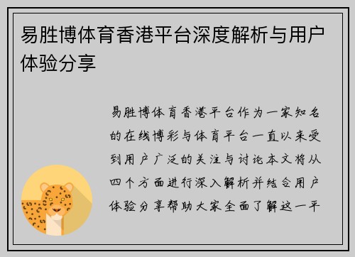 易胜博体育香港平台深度解析与用户体验分享
